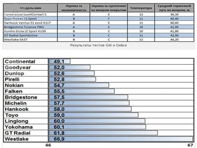 Самыми лучшими шинами были признаны Continental ContiSportContact 5, а худшими — модель Westlake SA37. Аналогичные выводы были сделаны и в немецком издании.