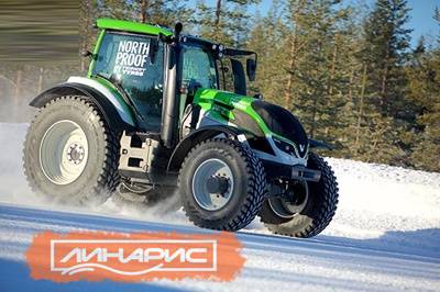 Весной прошлого года диапазон зимних шин был существенно расширен, и вниманию владельцев тракторов была представлена модель, называющаяся Nokian Hakkapeliitta TRI. Уникальный состав резиновой смеси и особый рисунок заметно повышают тяговое усилие на заснеженной и заледенелой поверхности, а диагональные ламели для максимально возможного поперечного и продольного сцепления увеличивают количество кромок. Для Nokian это не первая инновационная резина для тракторов. Еще 10 лет назад специалисты компании создали первые шины данной категории с рисунком блочного типа.